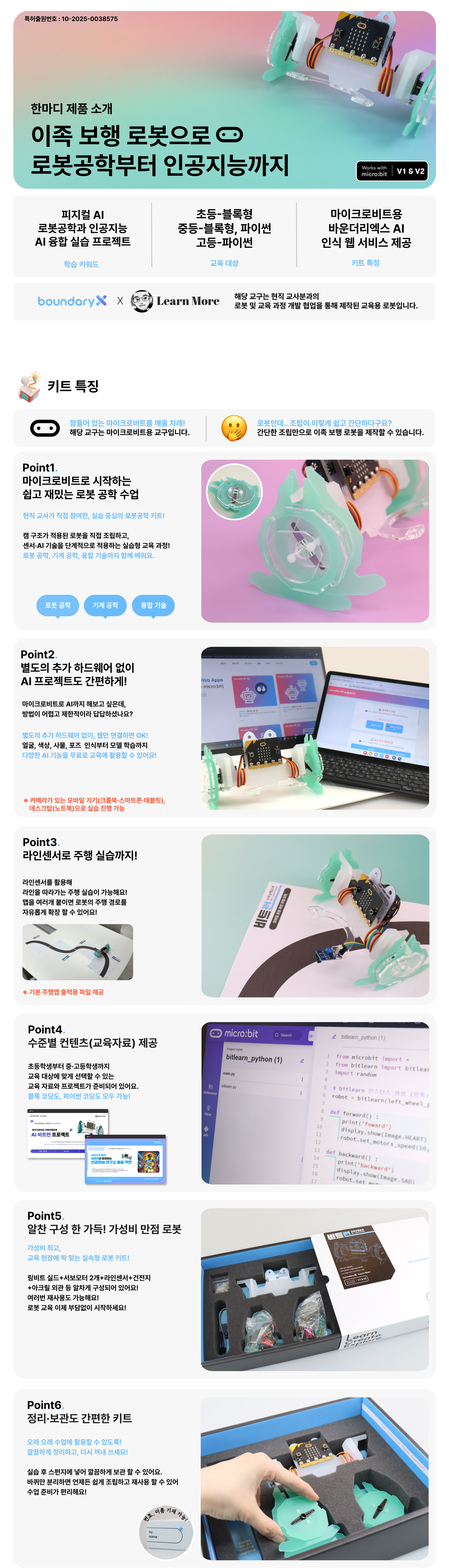 코딩부터 로봇공학 원리까지 배울 수 있는 마이크로비트 기반 이족 보행 로봇 키트